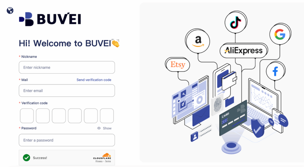 اذهب إلى https://buvei.com. إذا كنت مستخدمًا جديدًا، يمكنك التسجيل بسهولة باستخدام بريدك الإلكتروني، ثم إدخال رمز التحقق وكلمة المرور.