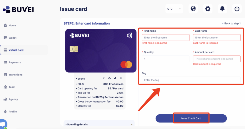 اضغط على Issue Credit Card لإنشاء البطاقة.