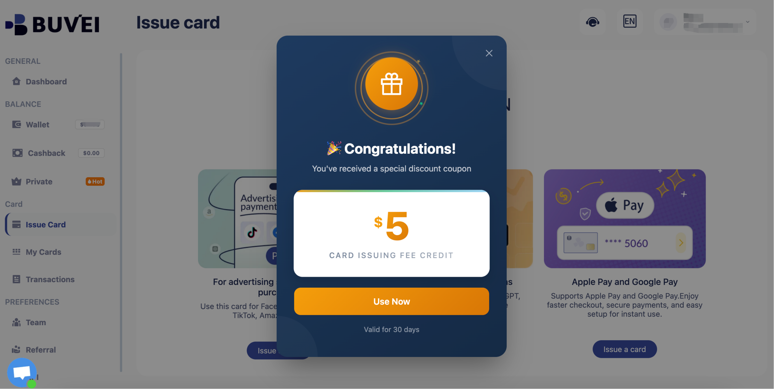 New users receive a $5 virtual card issuance coupon upon registration.