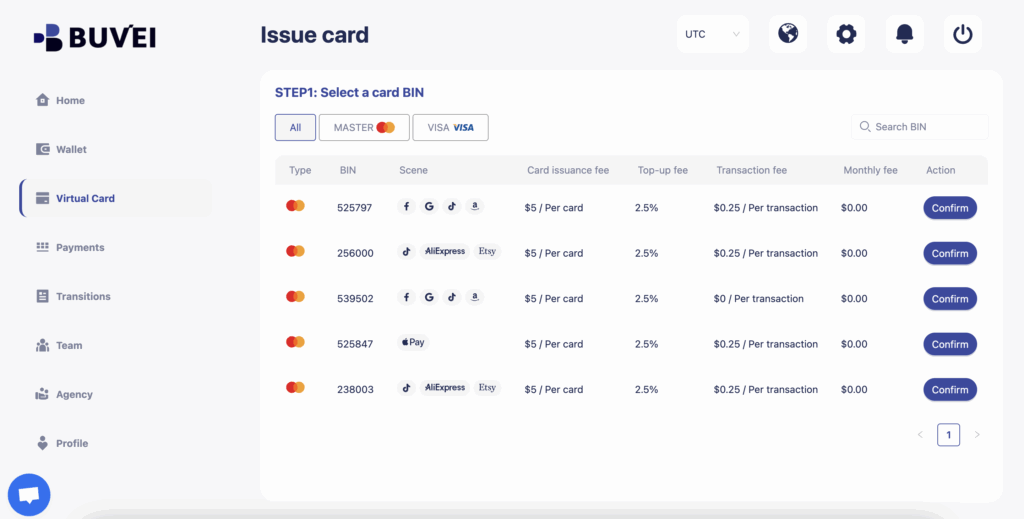 Buvei – Multi-BIN Virtual Cards, Issued Instantly