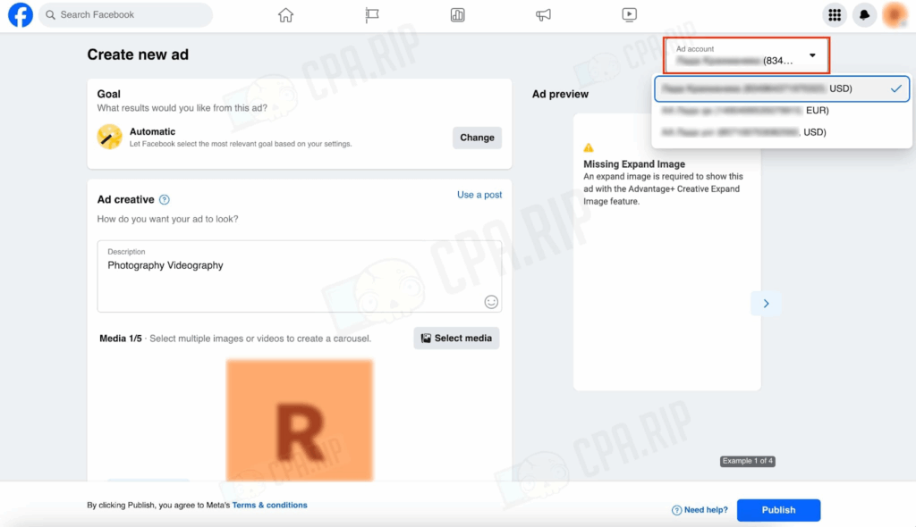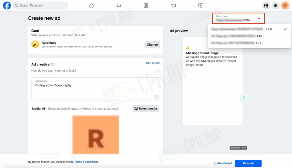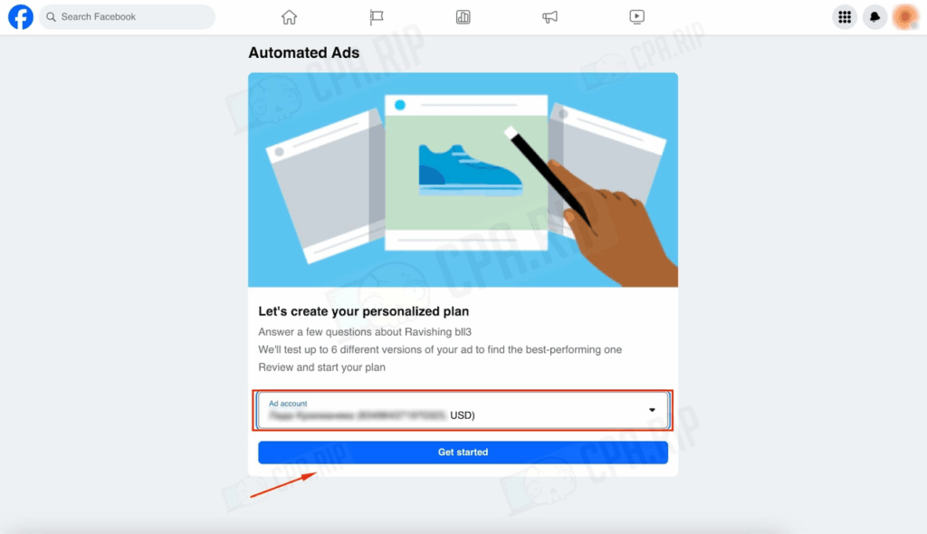 1. 広告アカウントを選択します