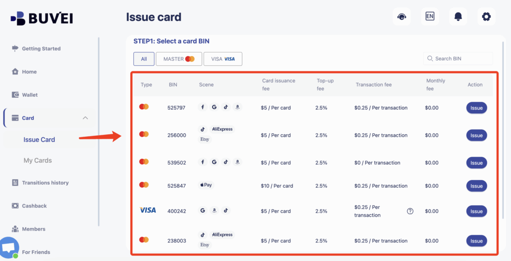Buvei – Multi-BIN Virtual Cards, Issued Instantly