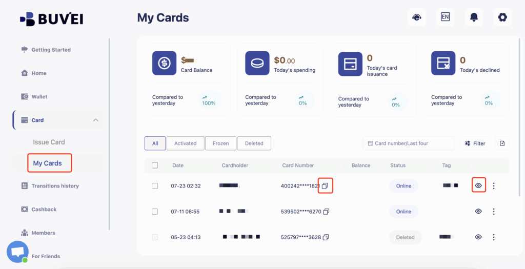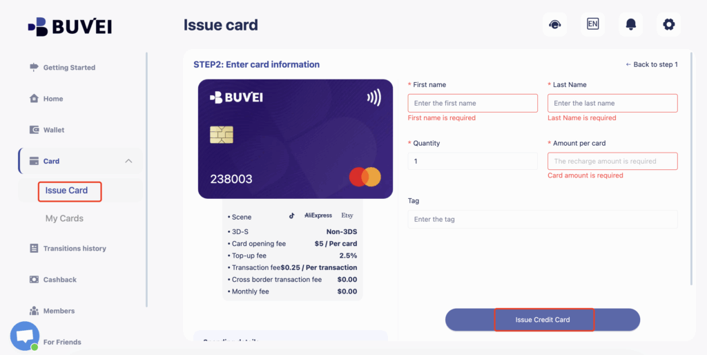 Create Buvei Virtual Cards