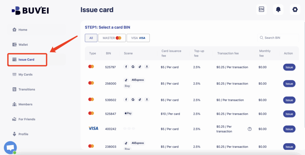 Buvei – Multi-BIN Virtual Cards, Issued Instantly