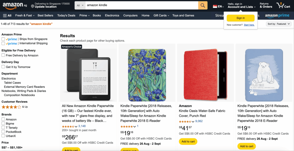 • Para acessar a oferta de outro país, altere o endereço de entrega para a região desejada.