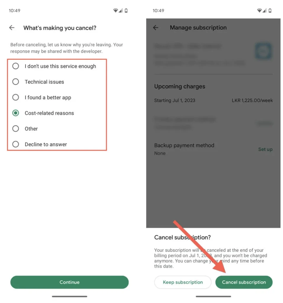 Toque novamente em Cancelar assinatura para confirmar.