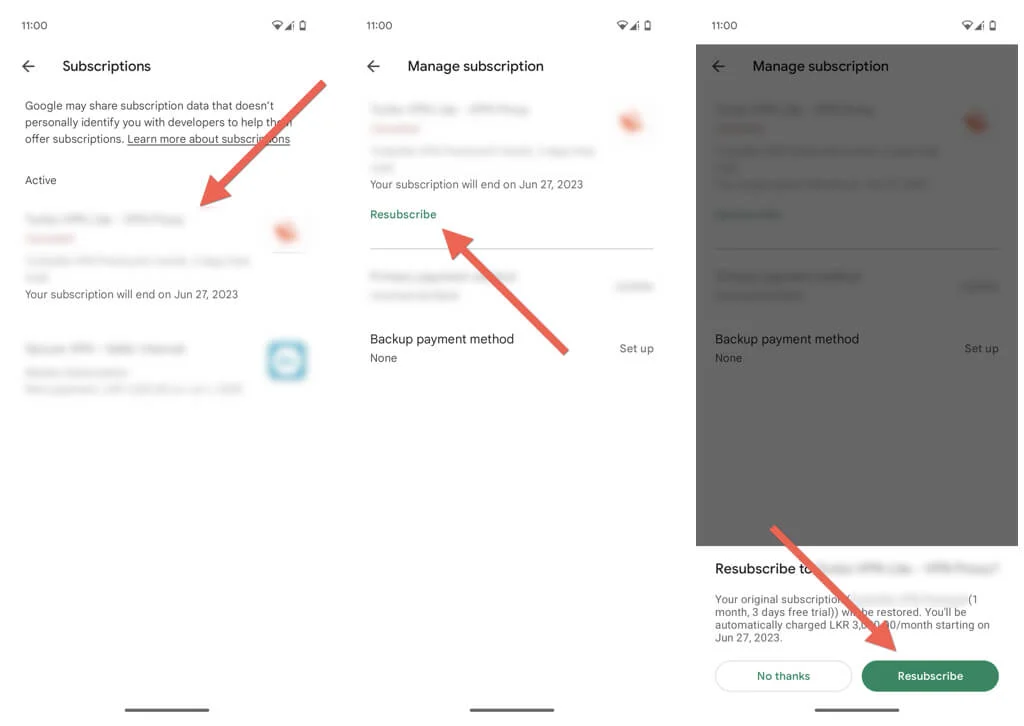 - Review the subscription information and tap Resubscribe again to confirm.